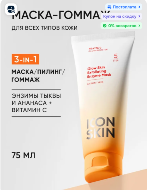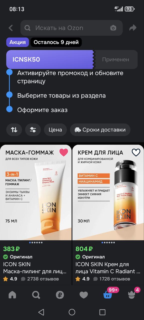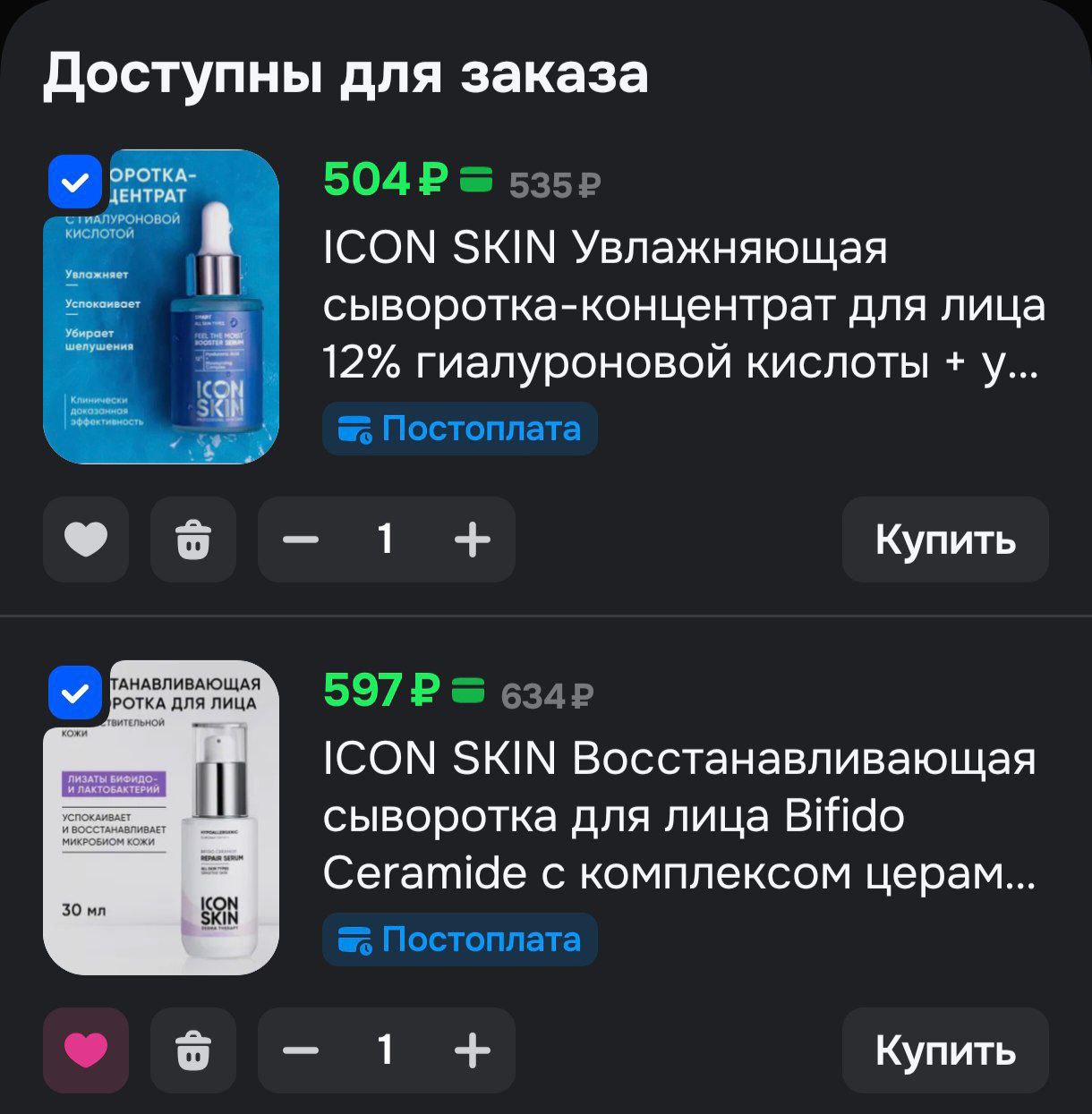 Российский бренд icon skin с реально работающими дозами активов и большим ассортиментом банок (так принято называть любые единицы косметических средств: тюбики, пузырьки, флакончики) сделал акцию Проверим насколько вы везучие)) на Озоне в оф магазине icon skin купон на 50%. Если этот купон применить цены на некоторые средства этой акции ровно пополам будут У нас половина чатика сегодня нахапала по скидке прекрасные банки. Но мне не повезло. У меня цена с купоном ровно 2 раза выше